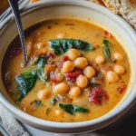Serve hot: Ladle your rich Tuscan Garbanzo Bean Soup into hearty bowls, ready to enjoy!